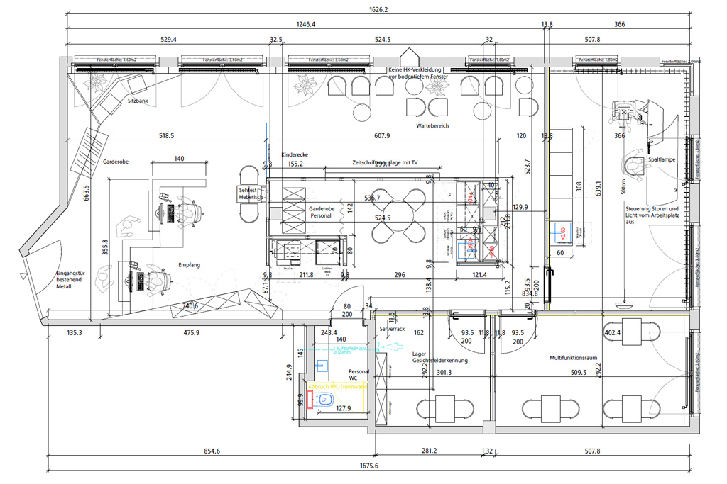 Bei seinem Projekt war die Herausforderung der zeitliche Ablauf. Seine Zeitvorgabe waren äusserst knapp, da wir zuerst ein Umnutzungsgesuch bei der Stadt Solothurn eingeben mussten. Dank dem Goodwill der Stadt Solothurn konnten wir bereits nach sechs Wochen mit dem Umbau beginnen, der sechs Wochen dauerte. Leider hatten wir noch mit Asbest im Gebäude zu tun, was uns Zeit kostete. Bei der Gestaltung der Praxis liess er uns freie Hand und wir konnten ihm mittels skizzierten Ideen unsere Ideen aufzeigen und das nun gezeigte Projekt unkompliziert planen und umsetzen.