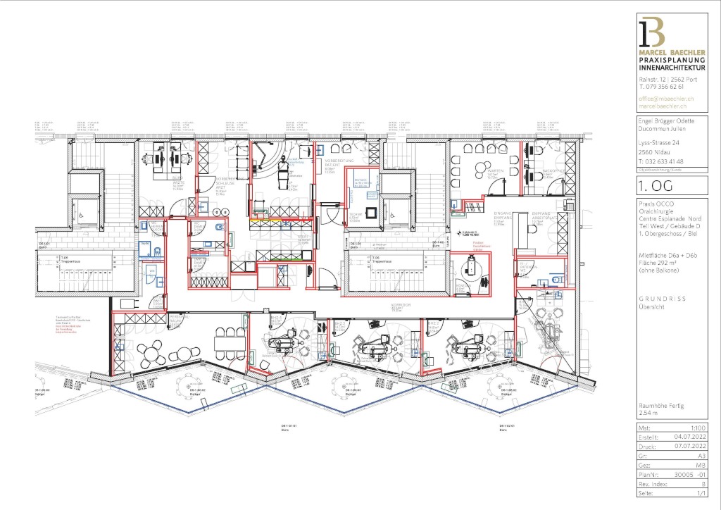 Wir erhielten den Auftrag im 1. Obergeschoss die neue Zahnarztpraxis für Oralchirurgie zu planen.