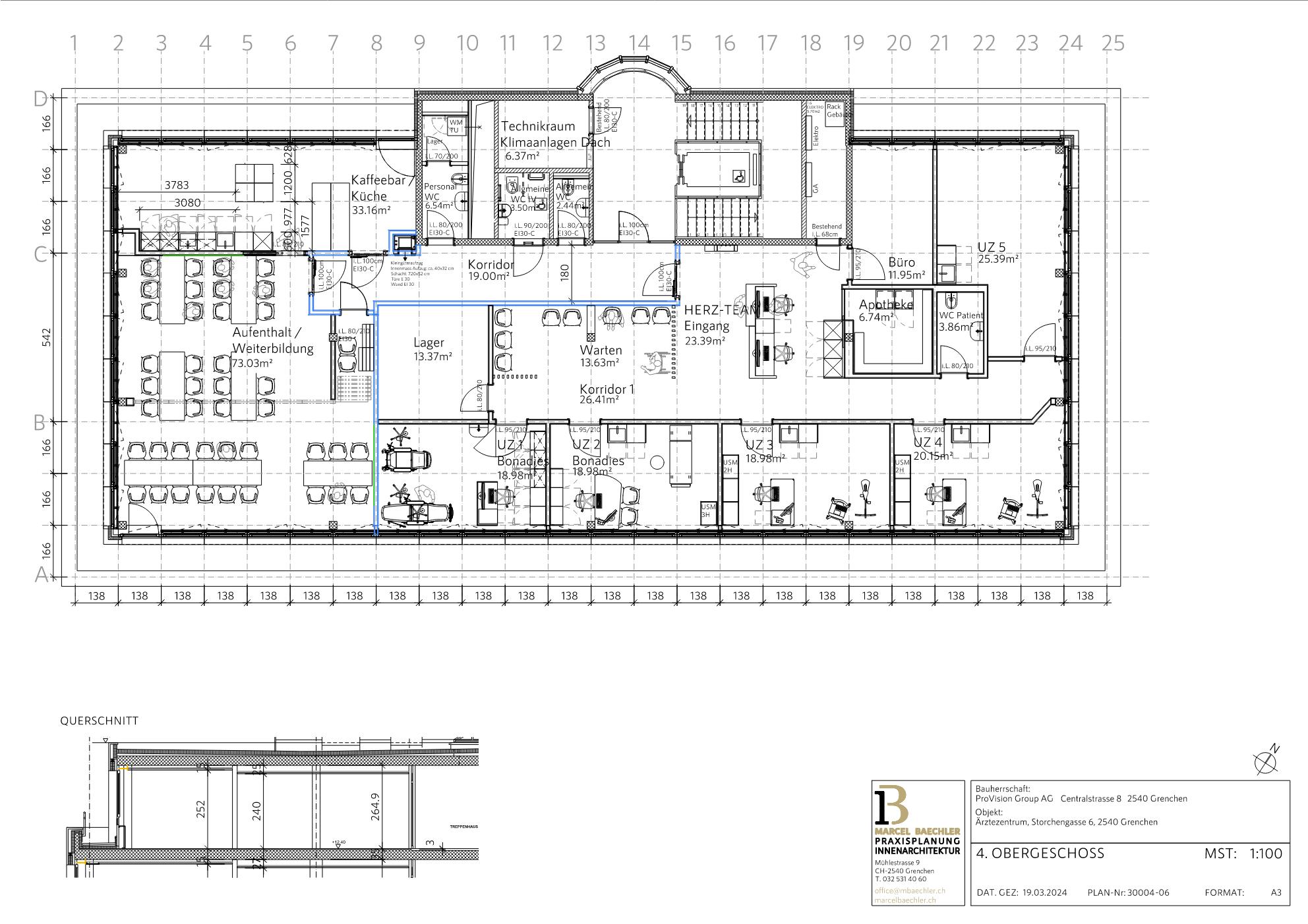 Wir erhielten den Auftrag, im 4. Obergeschoss die neue Praxis für Kardiologie zu gestalten und umzusetzen.